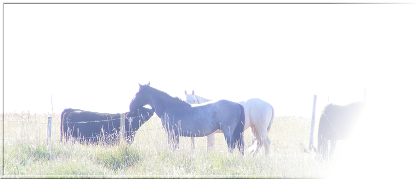 road - corrals, cedar house and blue outbuildings... horse trailer... horses :)